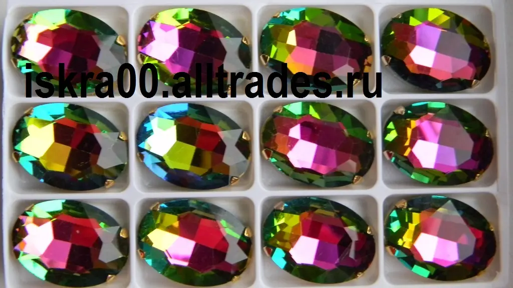 ОВАЛЫ ИЗ СТЕКЛА В МЕТАЛЛИЧЕСКИХ ЦАПАХ, ЦВЕТ ВИТРАМ МЕДИУМ, РАЗМЕР 20*30, В ЦАПАХ 4 ОТВЕРСТИЯ ДЛЯ ПРИШИВАНИЯ, ЦАПЫ ПОД ЗОЛОТО.