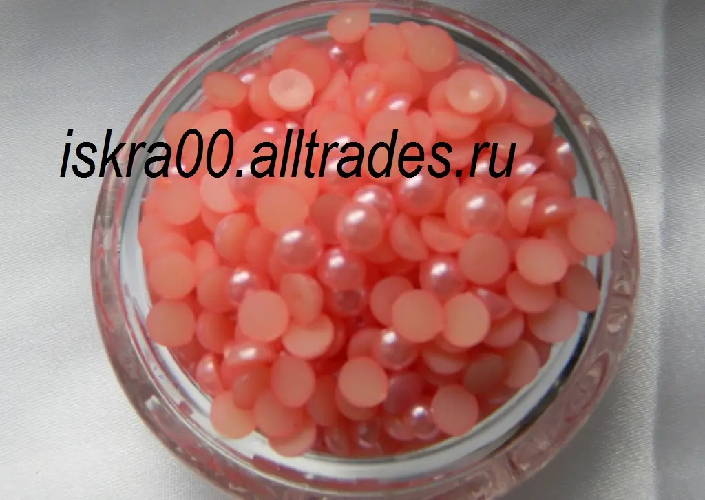 Бусины в виде половинок(полужемчуг), размер 6мм., из пластика,  цвет персиковый, сажают на специальный клей или оплетают, используются для декорирования повседневной одежды и сценического костюма. в пакетике 100гр.