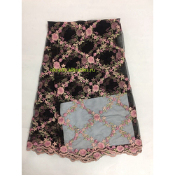 СЕТКА ЧЕРНОГО ЦВЕТА, РАСШИТАЯ ЦВЕТАМИ, В РИСУНКЕ ПРИСУТСТВУЕТ ЗОЛОТОЙ ЛЮОЕКС. ШИРИНА 130СМ.