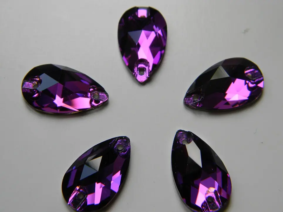 КАПЛИ ИЗ СТЕКЛА, РАЗМЕР 11*18, ЦВЕТ АМЕТИСТ, С ДВУМЯ ОТВЕРСТИЯМИ ДЛЯ ПРИШИВАНИЯ. ПАЧКОЙ ПО 18Р. В ПАЧКЕ 108ШТ.