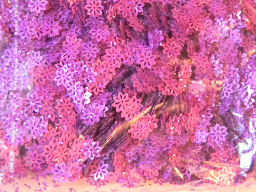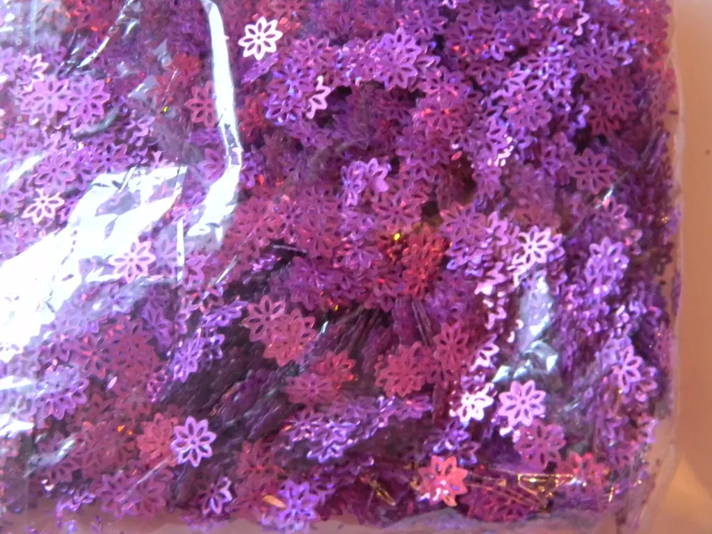 Паетки в виде снежинок, цвет сиреневый голограммой, глянцевые, размер 9мм. в упаковке 100гр.