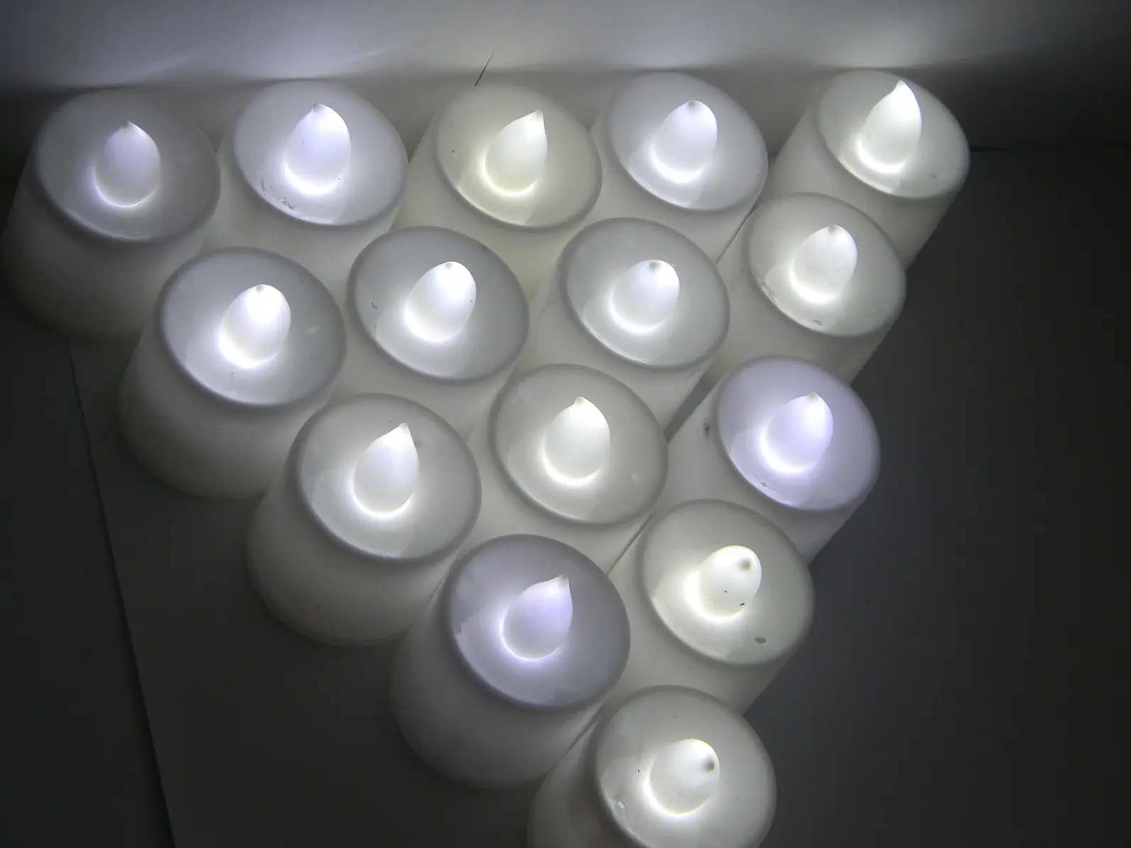 Электрические свечи на батарейках таблетках. Выключатель находится на дне свечи. Мерцает как настоящий огонек. Высота свечки с огоньком-4см. Без огонька 3.см. Диаметр свечи 3.5см. Свеча освещается полностью.
