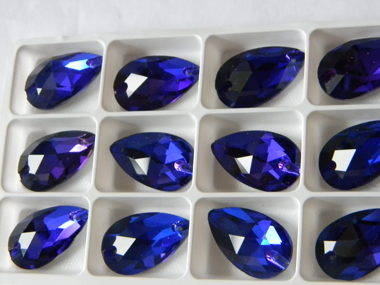 Капли из стекла, 17*28, цвет Капри блю, с 2 отверстиями для пришивания. фальгированное дно. Китай. ( 38р р. за шт. пачкой- 36шт.)