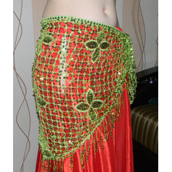 Платок набедренный, для тренировок, сетка с пайеками, цвет салатовый, ширина 58 см. длина 160см.